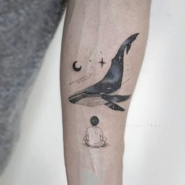 9张唯美的星空和鲸鱼搭配的纹身图案