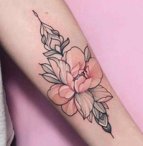 大臂素花纹身 9款女士的大臂黑灰花朵植物纹身图案