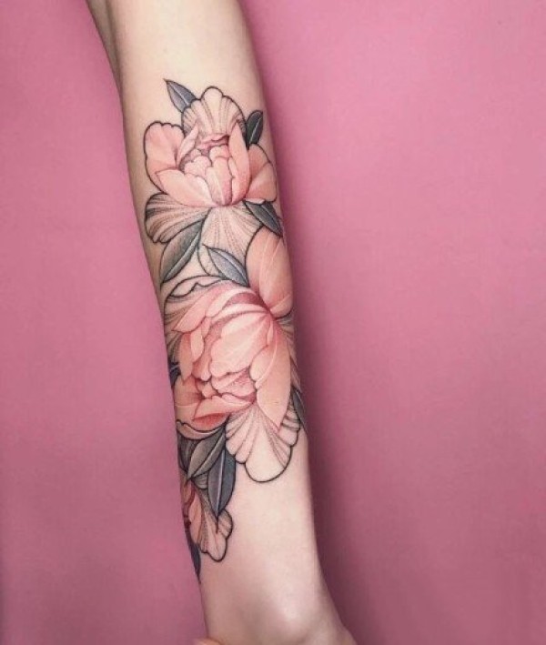 大臂素花纹身 9款女士的大臂黑灰花朵植物纹身图案