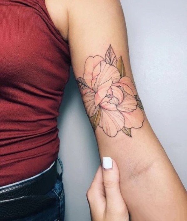 素花搭配粉色的一组好看纹身图片