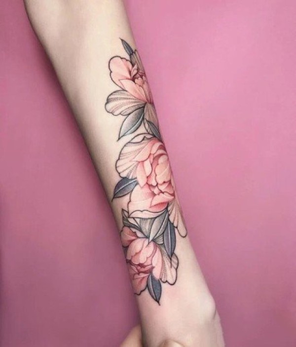 大臂素花纹身 9款女士的大臂黑灰花朵植物纹身图案