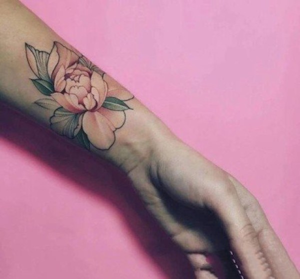 大臂素花纹身 9款女士的大臂黑灰花朵植物纹身图案