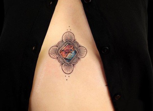 女生身上很性感的宝石蕾丝链纹身图案欣赏