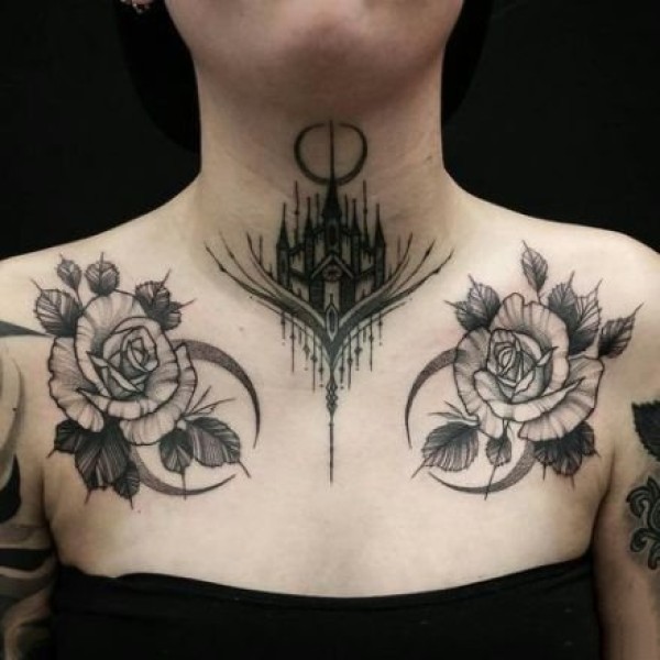 适合女生锁骨到肩部的唯美纹身图案18张