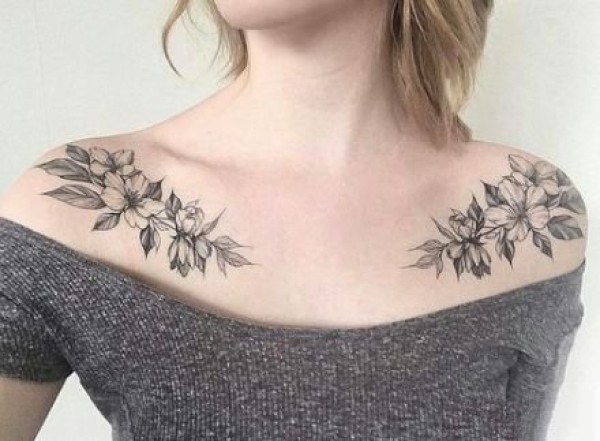 女生肩花纹身_15张女性双肩对称的肩花纹身图案作品图片