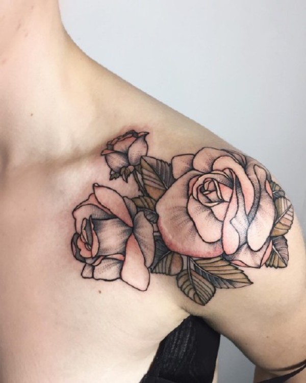 女生肩花纹身_15张女性双肩对称的肩花纹身图案作品图片