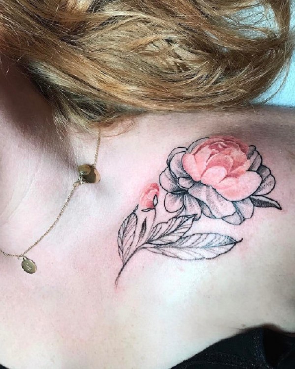 女性肩膀上多款漂亮的花朵纹身图案