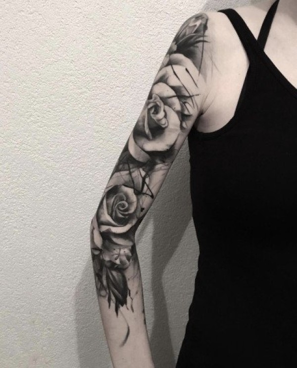 25款男性黑色手臂线条纹身点刺技巧半甲纹身图案