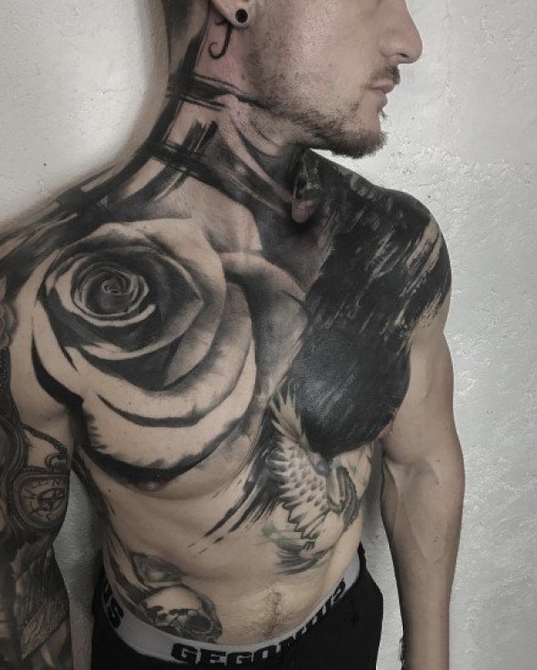 30款男性超帅气的黑灰色脖子纹身图案大全