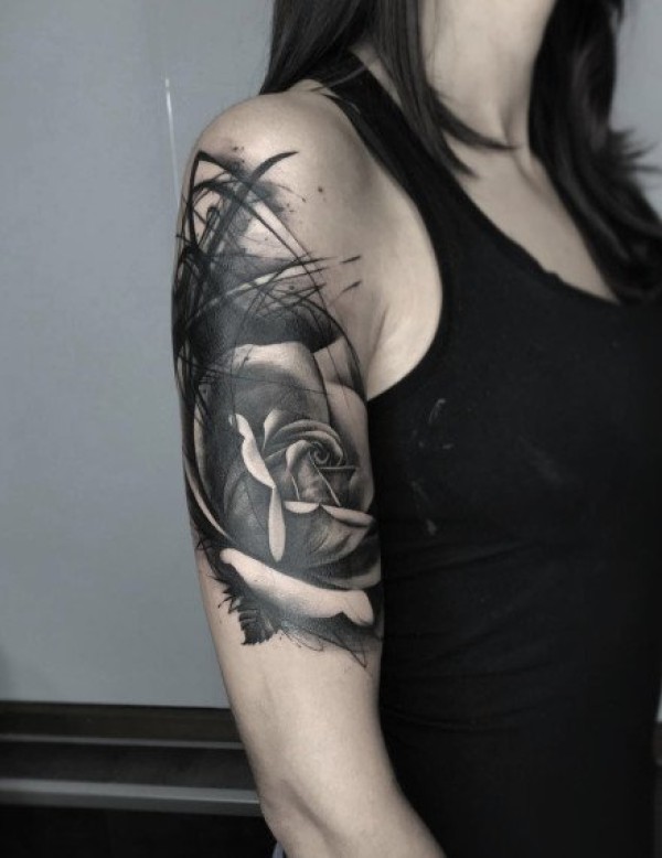 25款男性黑色手臂线条纹身点刺技巧半甲纹身图案