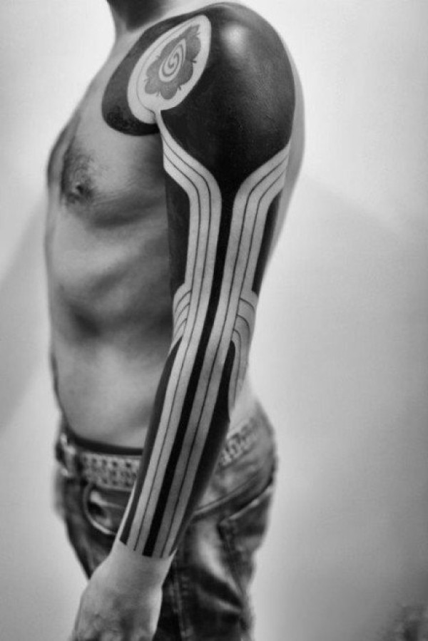 25款男性黑色手臂线条纹身点刺技巧半甲纹身图案