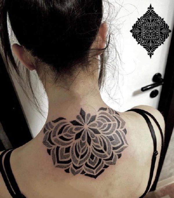 后颈部很适合的点刺梵花纹身图案9张
