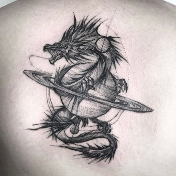 龙纹身手稿_一组老传统黑灰龙手稿纹身图案