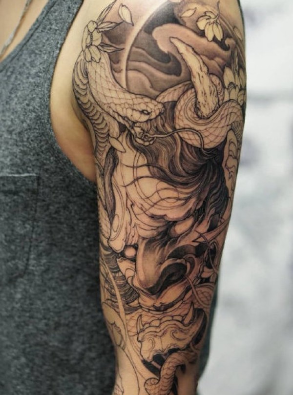 新传统半甲:9张新传统风格的半胛纹身图案