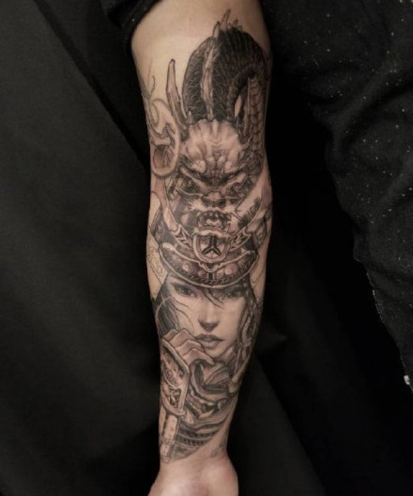 日本彩色新传统传奇人物纹身动物图案纹身 by Yushi Tattoo