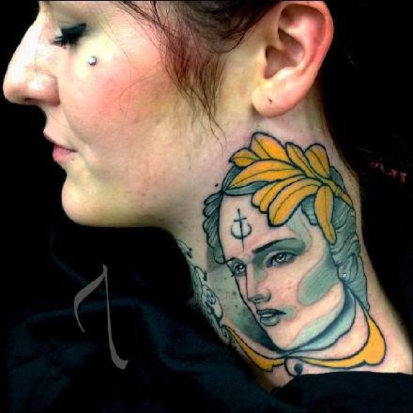 后颈部纹身小图--9张女生脖子后颈处的简约纹身图案