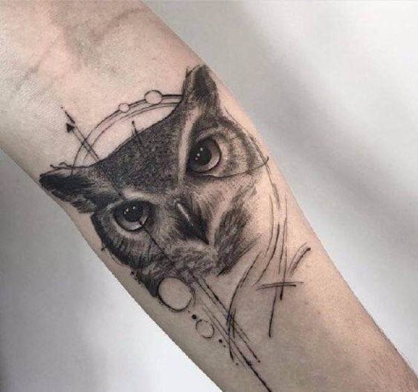 几张猫头鹰花胸纹身图案和手稿欣赏