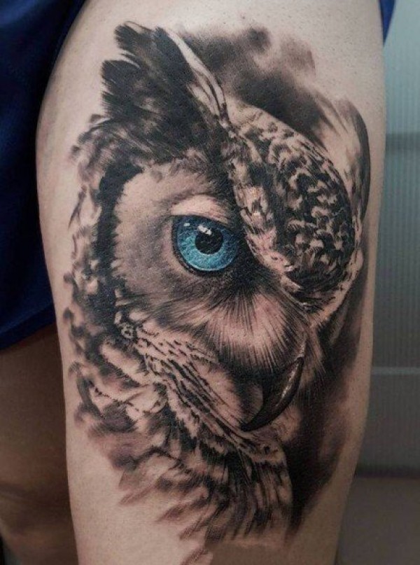 鹰纹身--一组彩色的猫头鹰等鹰纹身作品欣赏