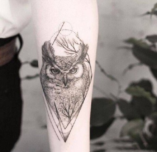 鹰纹身--一组彩色的猫头鹰等鹰纹身作品欣赏