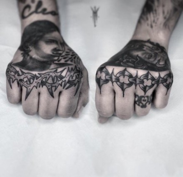 左右对称的成对黑灰纹身图案