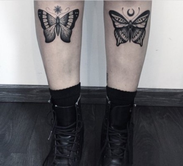 腿部后面的两只腿成对黑色风景纹身图案