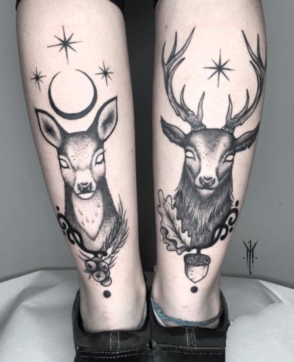 左右对称的成对黑灰纹身图案