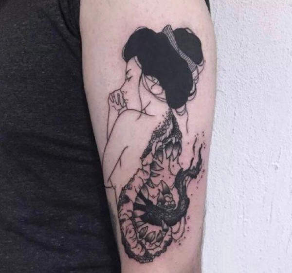 艺伎纹身--一组独特创意的日式艺妓纹身图案作品