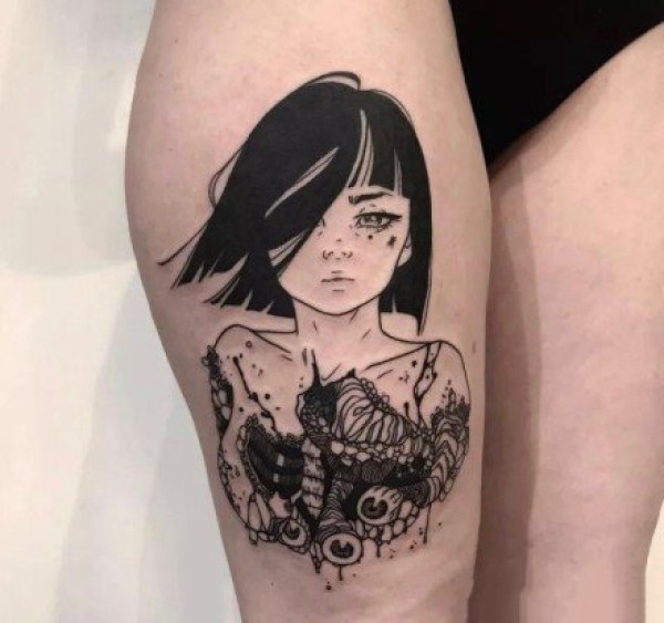 艺伎纹身--一组独特创意的日式艺妓纹身图案作品