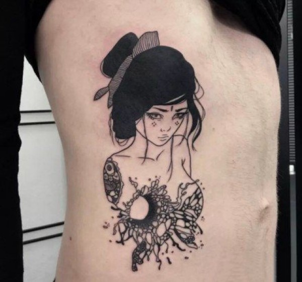 18张各种风格的艺伎纹身图案欣赏