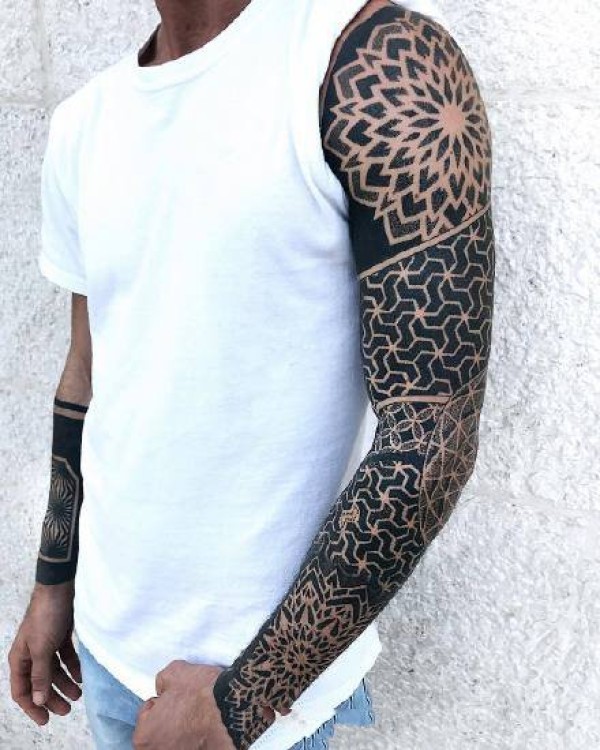 暗黑点刺风格的花臂纹身图案