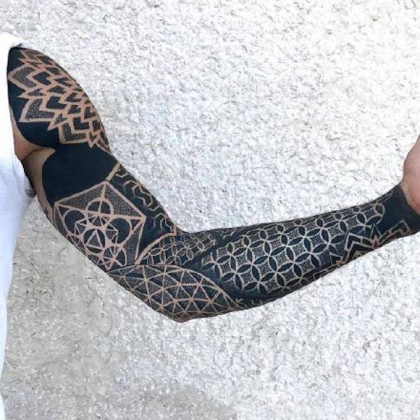 暗黑点刺风格的花臂纹身图案