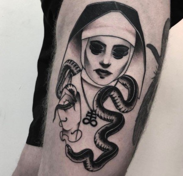 能面万媚纹身手稿_52张日式能剧面具纹身手稿图案素材欣赏