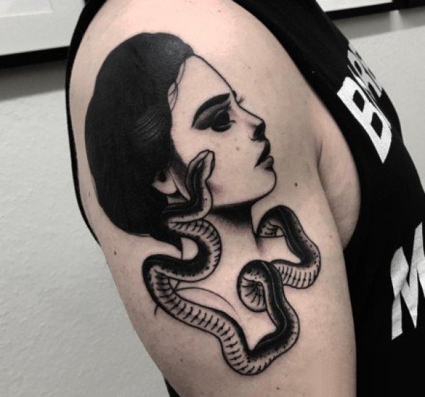 黑色的一组女郎纹身图片