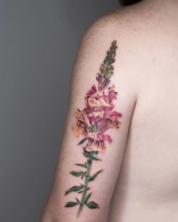 纹在手臂胳膊上的黑灰素花花卉纹身图案欣赏
