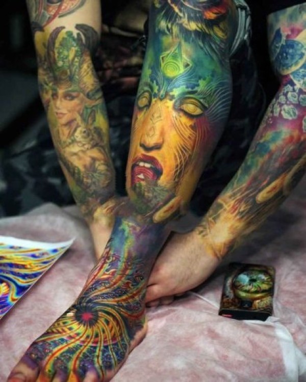 一组炫彩色大花臂纹身图案作品