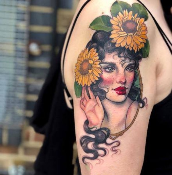 newschool彩色的欧美女郎纹身作品