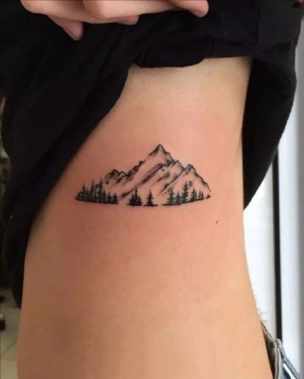 森林树木纹身图案_一组手臂上黑灰树木森林纹身图案作品