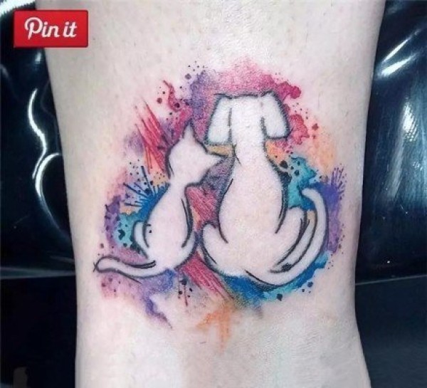 潮流纹身-色彩可爱的小猫小狗手臂纹身图片