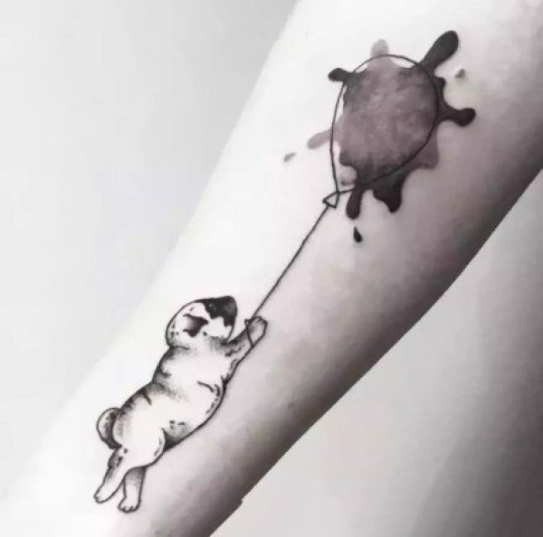 潮流纹身-色彩可爱的小猫小狗手臂纹身图片