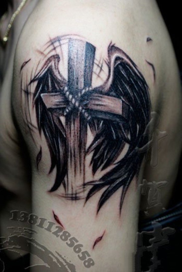 带翅膀的十字架纹身作品图片9张