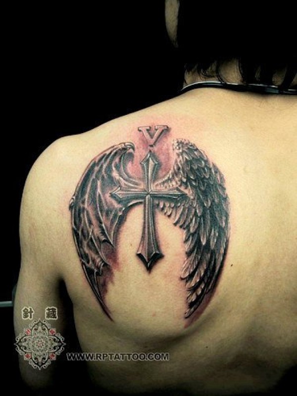 带翅膀的十字架纹身作品图片9张