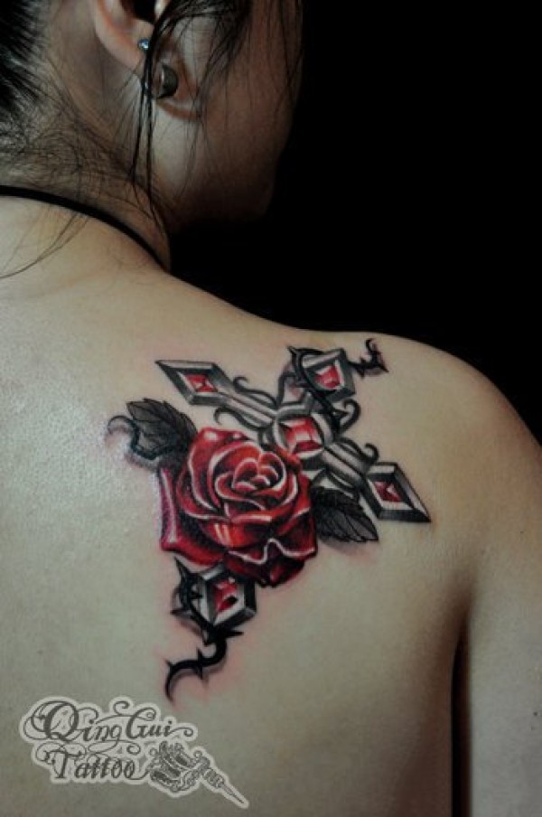 一款很立体的彩色十字架纹身图案_十字架纹身图案大全_纹身图吧