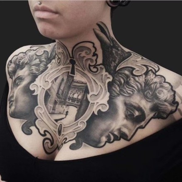 花胸纹身--一组男性霸气的大花胸纹身图案作品欣赏