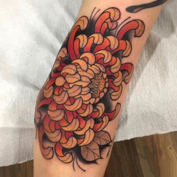 非常霸气的半甲经典彩色鲤鱼花卉纹身图案