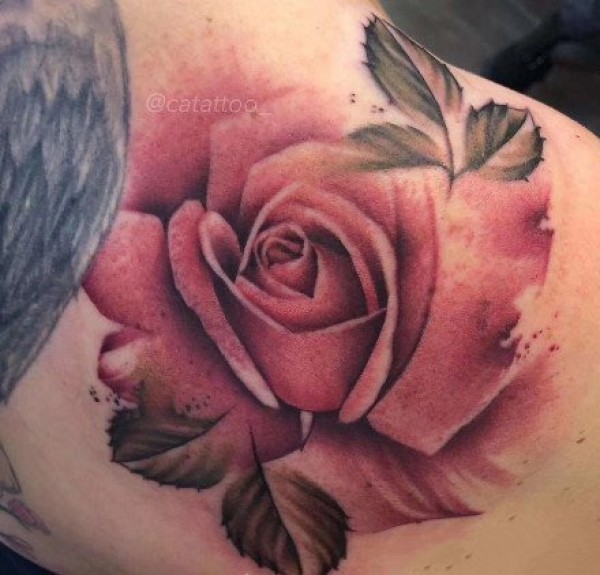 肩花纹身--一组适合肩部的黑灰肩花纹身图案欣赏