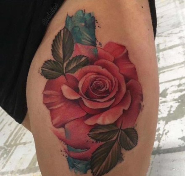 性感花朵纹身--女性大腿侧部性感的花朵纹身