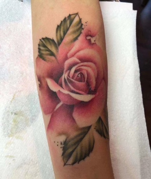 纹在手臂胳膊上的黑灰素花花卉纹身图案欣赏