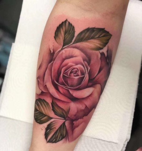 纹在手臂胳膊上的黑灰素花花卉纹身图案欣赏