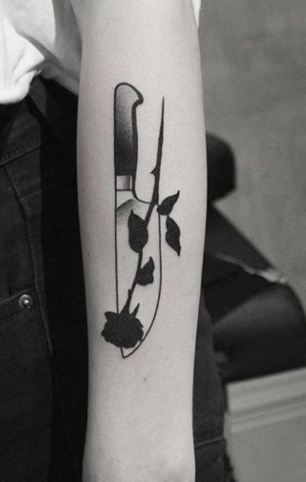 心脏纹身图案 女生手臂上黑灰纹身心脏纹身图案