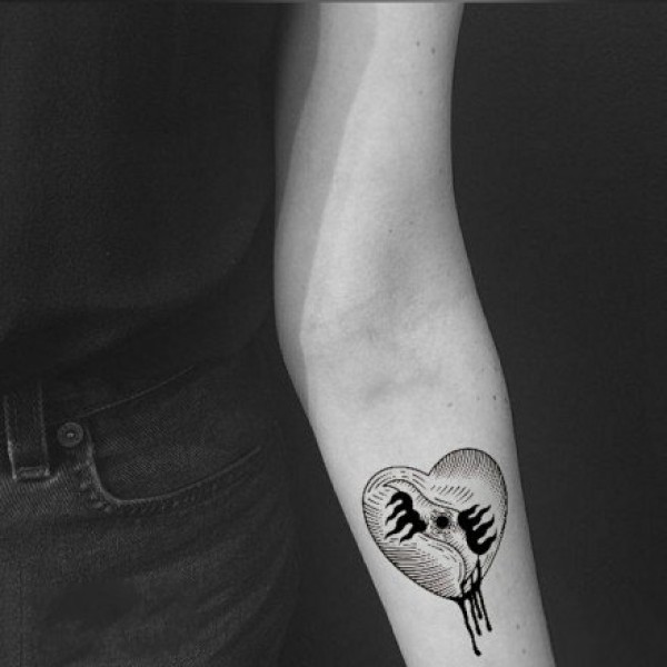 心脏纹身图案 女生手臂上黑灰纹身心脏纹身图案